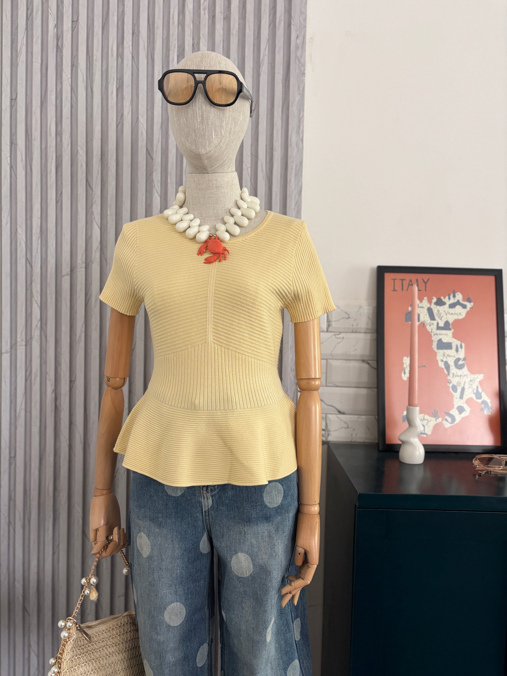 Blusa tejida amarilla peplum